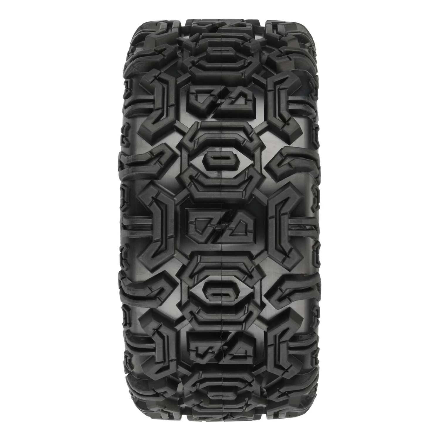 The Warthog 5.7″ tires are conveniently pre-mounted on black Ripper wheels with a removable hex for ultimate versatility! Not only do the included hexes allow you to choose between the KRATONâ„¢ 8S and X-MAXX® axle sizes, they also allow you to easily replace a damaged wheel hex without needing to replace your glued tires and eliminate the need for other adapters or wheel modification. The hefty 8×48 interlocking hex design is secured to the wheel by 8 M3 screws that are spaced 48mm across. Replacement Hexes are available separately (PRO638300).
